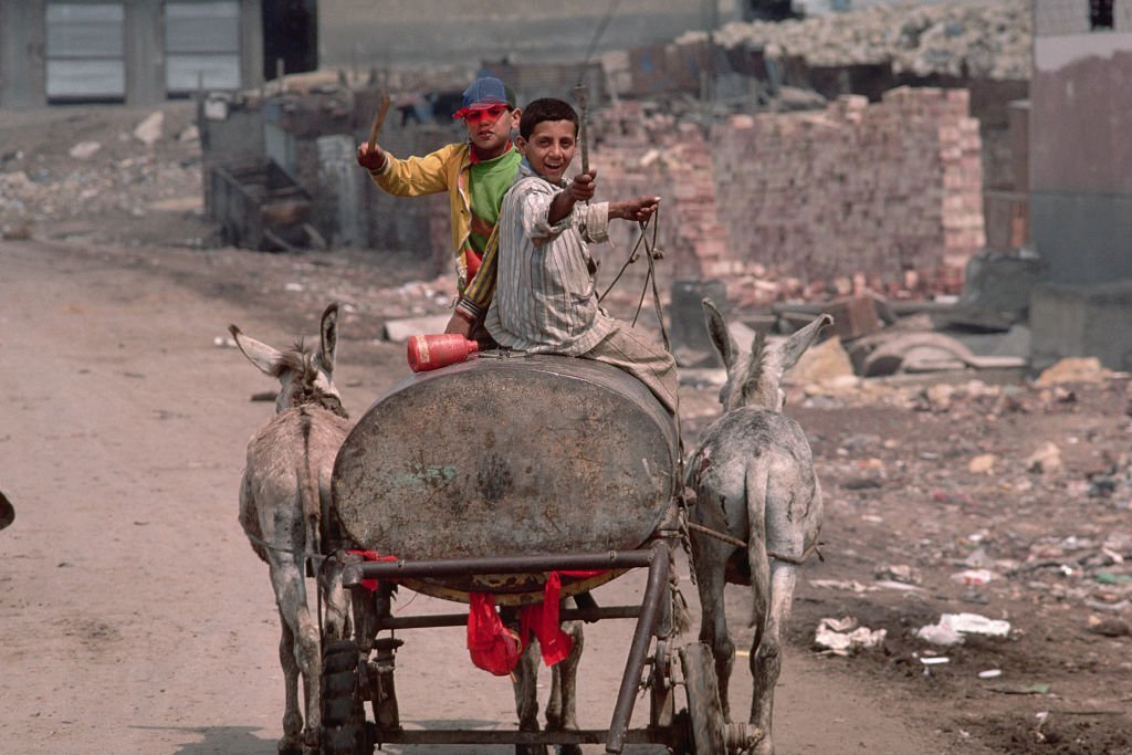 طفلان مصريان في إحدى مكبات النفايات في مصر، وعادة ما يُبعث الأطفال هناك للبحث بين أكوام القمامة عمّا يمكن إعادة تدويره. (Getty Images).