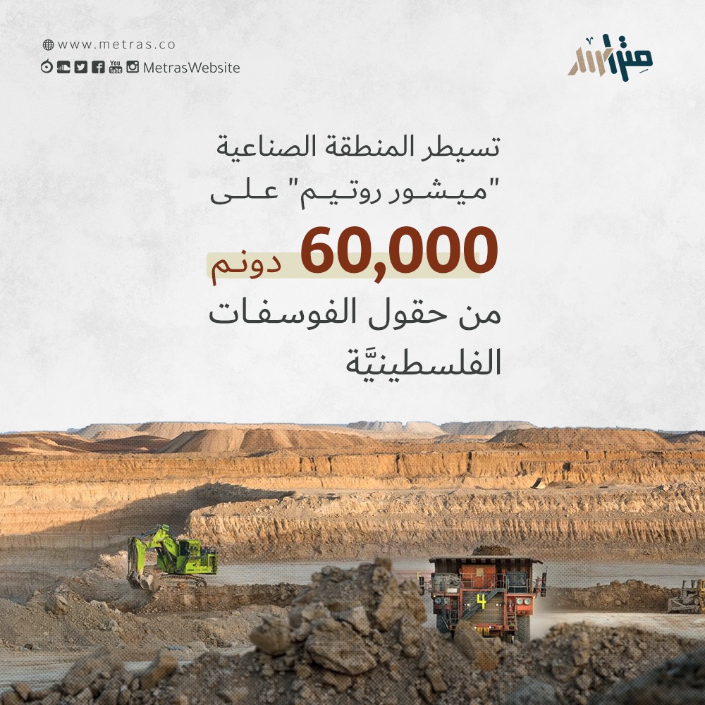 تمتلك فلسطين موارد طبيعيّةً وفيرة، وتُعتبر صحراء النقب من المناطق الغنيّة بالثروات الطبيعيّة، ومن أهمها “الفوسفات” الذي يُعدّ مركّباً مركزيّاً في صناعة الأسمدة. التفتت “إسرائيل” لأهميّة هذا المعدن منذ السنوات الأولى التي تَلَت النكبة، وأسست في العام 1952 شركة “فوسفات النقب”، أولى منشآتها الصناعيّة لاستخراج الفوسفات من أراضينا.