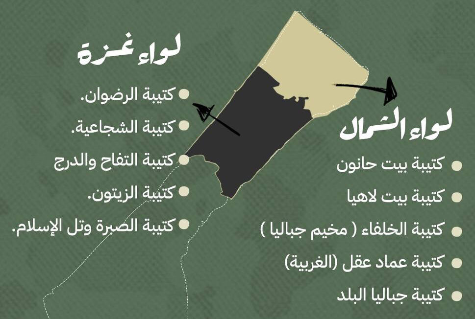 تمتلك كتائب القسام ستة ألوية قتالية موزعة على محافظات القطاع. وهي: