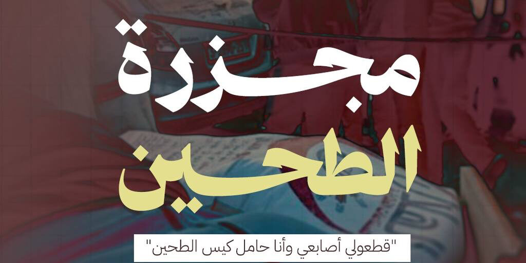 في لحظة كانت أيديهم تمسك بطحين ندر وجوده، وفي لحظة فقدوا أيديهم وفقدوا الطحين، وآخرون سقطوا فوراً جثثاً هامدة وتخضب الطحين بدمائهم.
