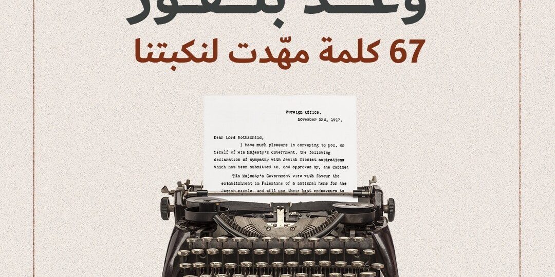 رسالةٌ صدرت في 02.11.1917 من وزير خارجيّة بريطانيا، آرثر بلفور، إلى أحد زعماء الصهيونية، تعدُ بـ”وطنٍ قوميّ لليهود” في فلسطين.